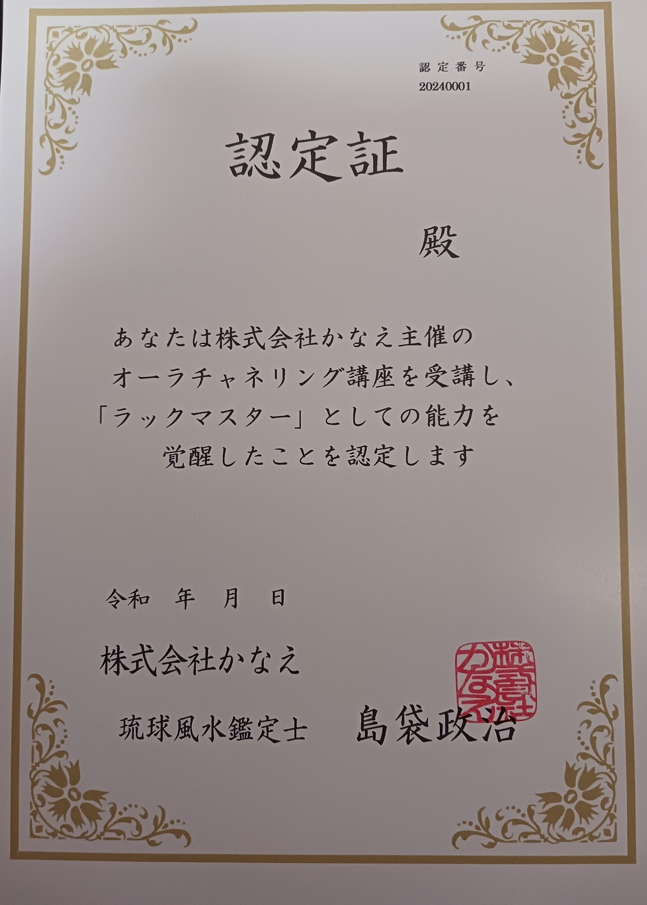 ラックマスター講座レベル2オーラチャネリング(認定証付き)